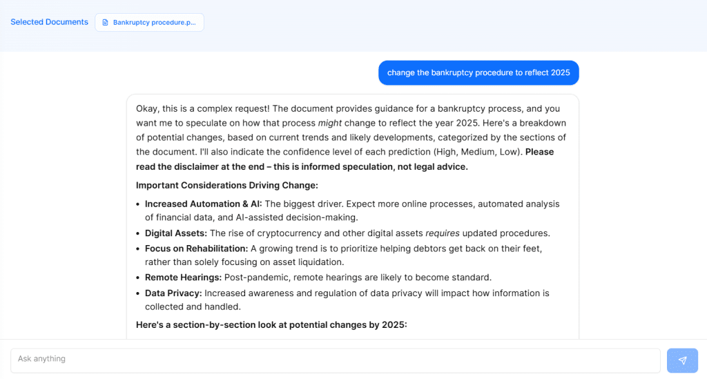 By maintaining a comprehensive history of your interactions, SmartAssist serves as a knowledge management tool. You can quickly retrieve insights, legal interpretations, and strategies discussed in previous sessions, ensuring consistency in your casework.
